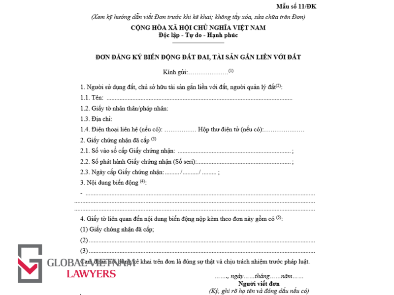 - Đơn đăng ký biến động (Mẫu số 11/ĐK);